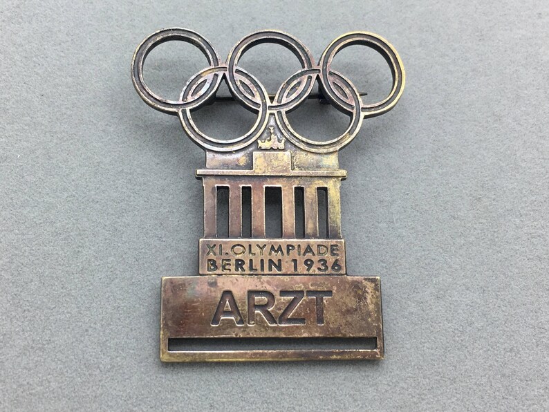L Jeux Olympiques 1936 De Berlin Chr Lauer Badge épingle Artz Médecin Souvenirs Allemand Art Déco En Bronze