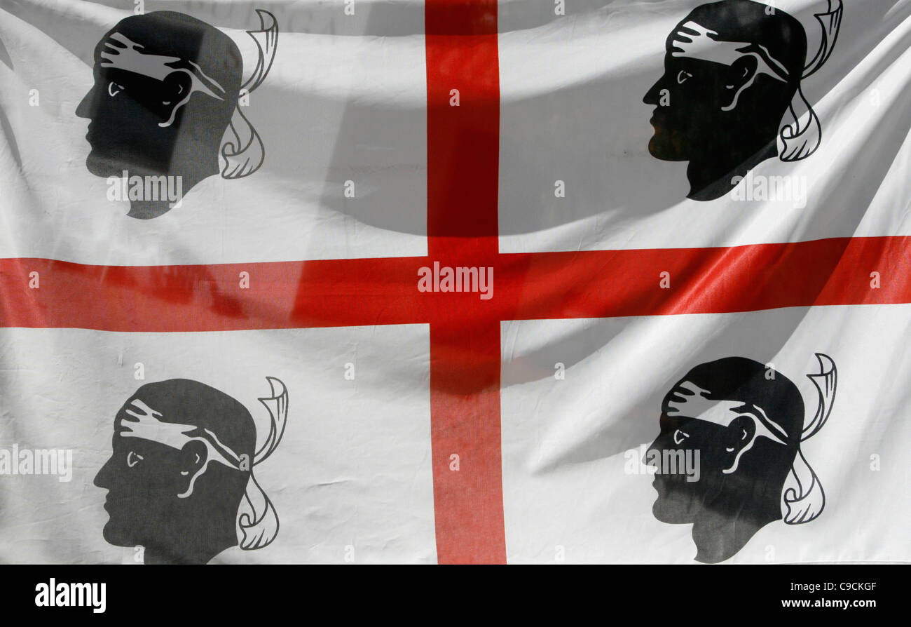 Histoire du drapeau de la sardaigne. Avant dêtre rattachée au royaume de france lîle de beauté appartenait à la république de gênes. Quand on sintéresse à lhistoire du drapeau corse il est inévitable de penser au drapeau officiel de la région autonome de sardaigne qui depuis 1999 arbore sur champ blanc et croix rouge de st georges quatre têtes de maures au front ceint dun bandeauquand on regarde le drapeau les quatre têtes sont tournées vers la droite. Il naura échappé à personne que la corse et la sardaigne se situent au cœur du mare nostrum.