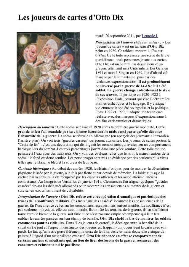 Complet avec des images - Les Joueurs De Skat D Otto Dix Histoire Des Arts. -