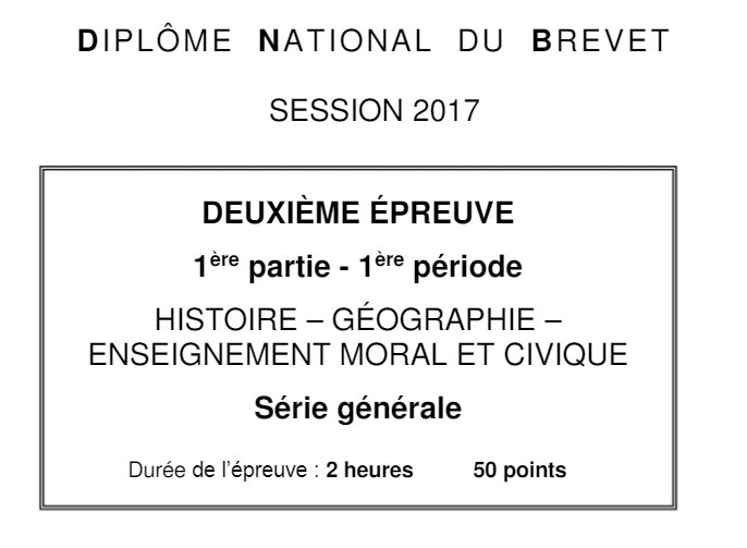 Commentaires sur - Sujet Histoire Geo Emc Brevet 2017. -