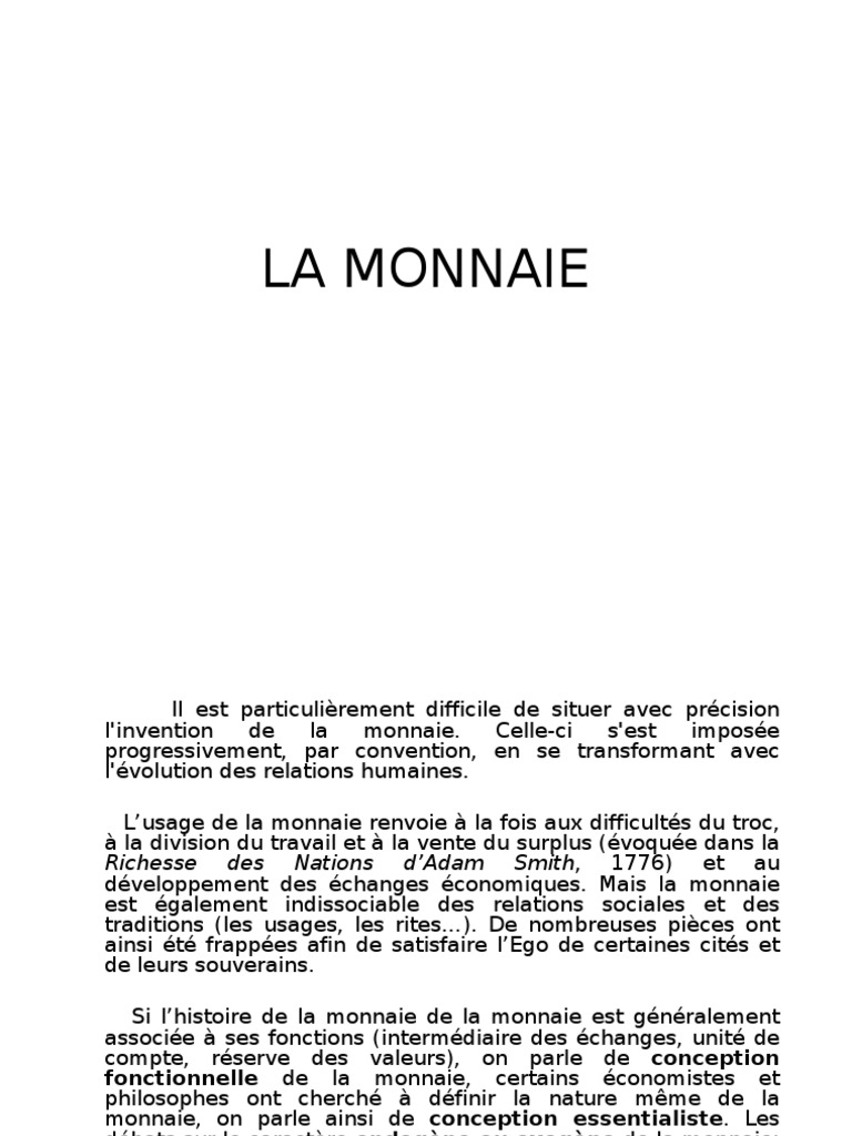 Histoire Monétaire Formes Et Fonctions De La Monnaie
