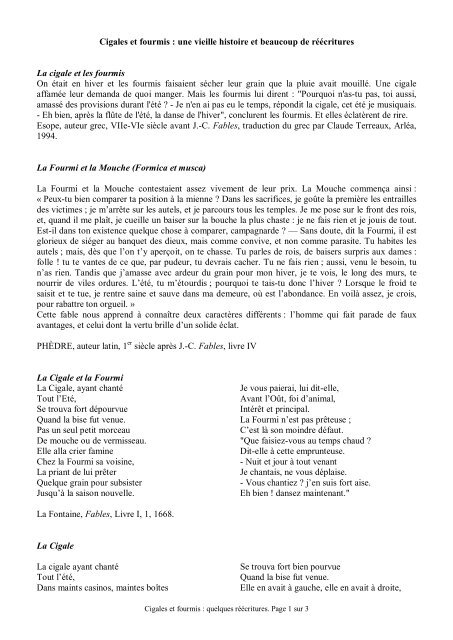La fontaine a eu connaissance de la version desope comme du travail daphtonius. La rentrée des batailles rangées bamenda. La fourmi amazone dossier.