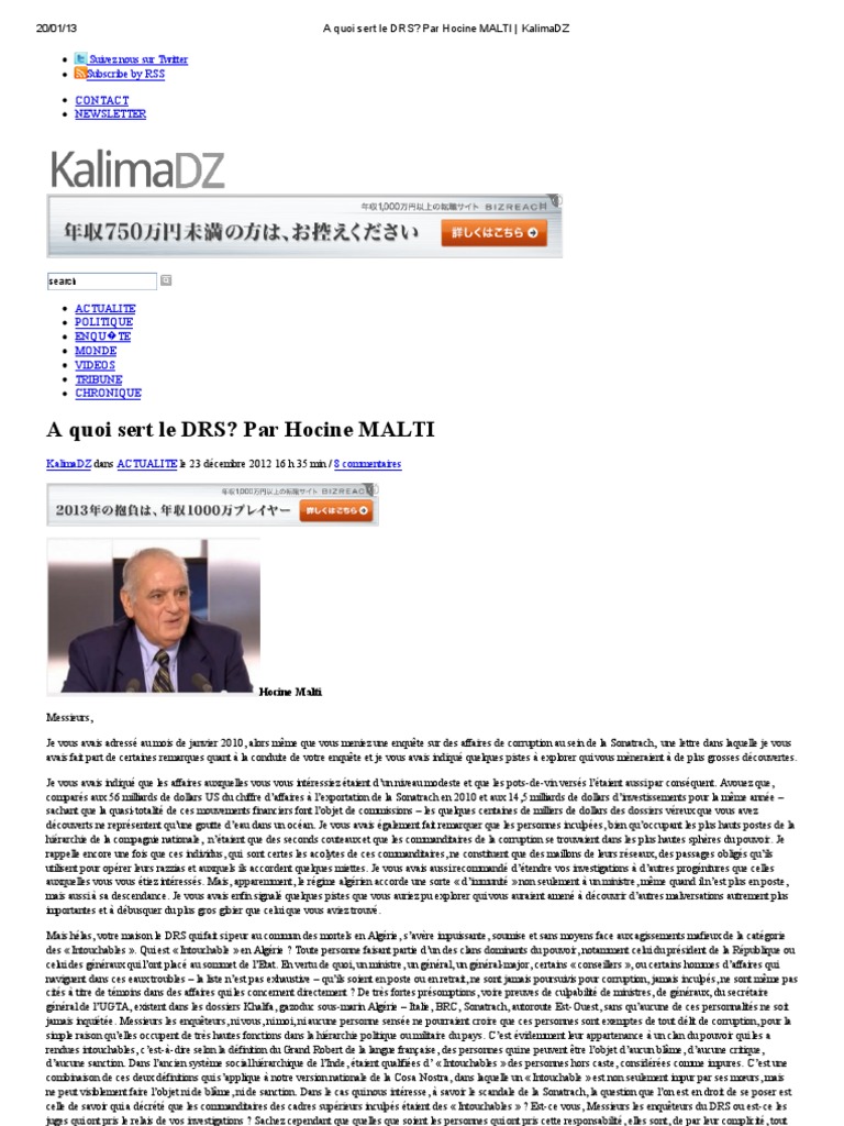 Lettre Ouverte De Hocine Malti L évènement Médiatique