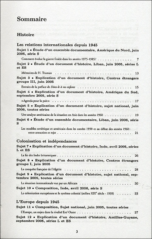 Pour les révisions en ligne voici 10 annales et 2 corrigés qui ont été données aux élèves dans les différents centres dexamens de la session 2005 du bac es. Extrait du corrigé. Cette page rassemble les annales de lannée 2005 pour lépreuve dhistoire géographie au bac es.
