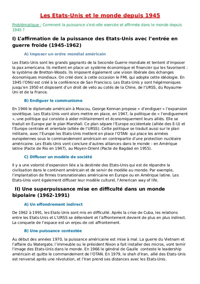 Les Etats Unis Et Le Monde Copie