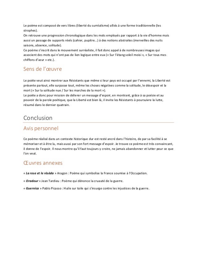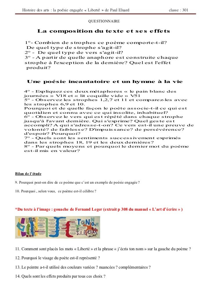 C'est tout ce que nous pouvons vous informer sur le fiche histoire des arts liberté paul eluard. Merci de visiter le blog Aperçu Historique 2019.