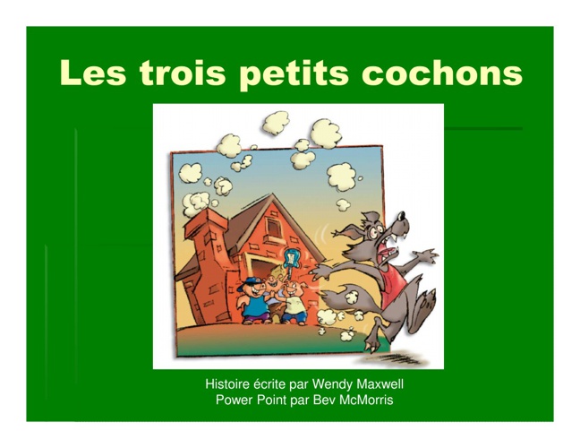 Histoire de les trois petit cochon. Le troisième petit cochon se construit une maison de briques et de ciment. Lidée est de montrer aux enfants quune. Le deuxième petit cochon se construit une maison faite de bois.