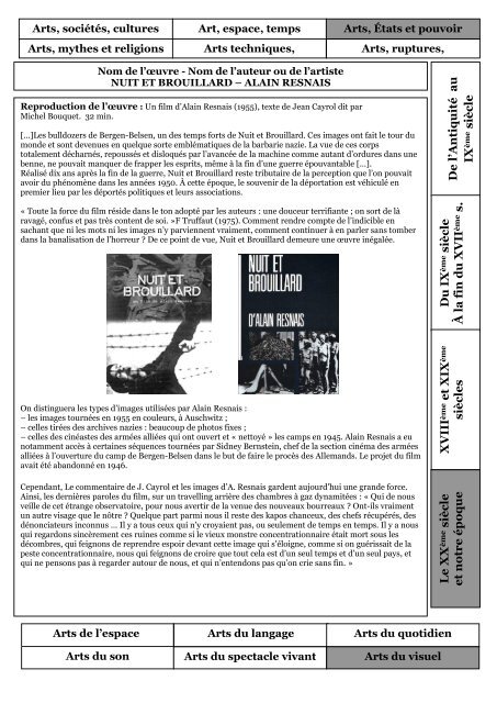 Complet avec les données - Histoire Des Arts Nuit Et Brouillard Alain Resnais. -