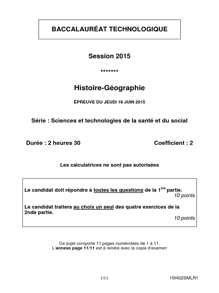 Sujet Histoire Géographie Bac Pro Métropole Juin 2015 Site