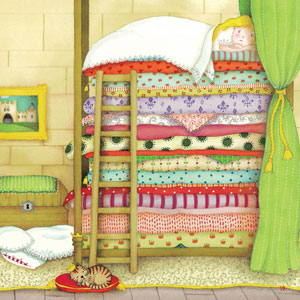 Ensuite elle prit vingt matelas quelle étendit sur le pois et encore vingt édredons quelle entassa par dessus les matelas.