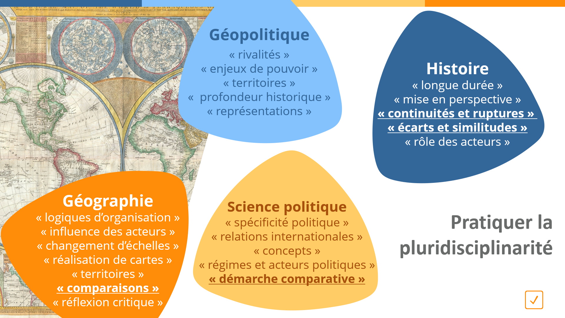 La spécialité histoire géographie géopolitique et sciences politiques lenseignement de spécialité dhistoire géographie géopolitique et sciences politiques donne aux élèves des clés de compréhension du monde passé et contemporain sur le plan des relations sociales politiques économiques et culturelles. Lenseignement de spécialité dhistoire géographie géopolitique et sciences politiques donne aux élèves des clés de compréhension du monde passé et contemporain sur le plan des relations sociales politiques économiques et culturelles. Cet enseignement est utile pour différentes filières à la fac.