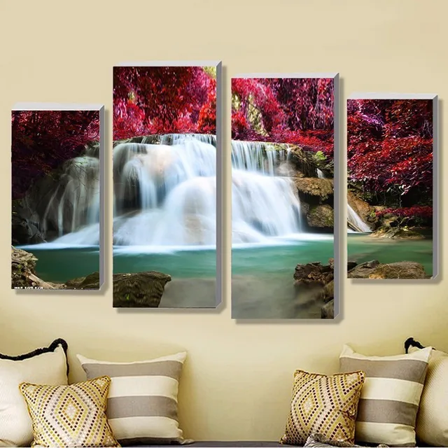 Us 1323 27 Off4 Panels Jungle Stream Red Flower Posters Hd Printed Painting Natural Scenery Canvas Living Room Decoration Wall Art Pictures In