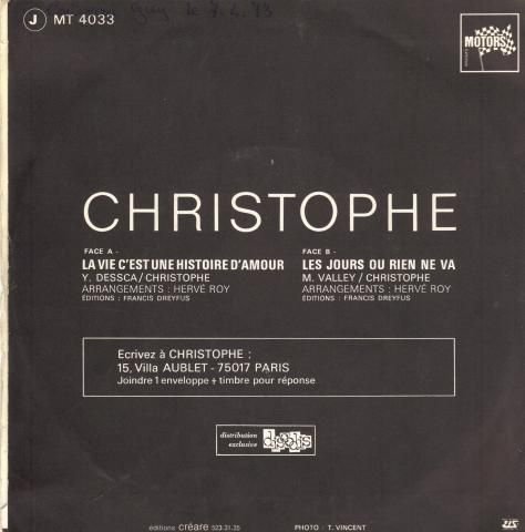 Christophe La Vie Cest Une Histoire Damour Proche B Vg