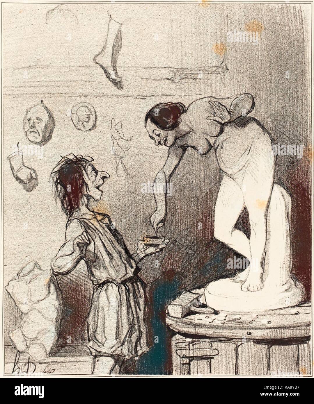 Au tout 1er plan en bas à droite on peut deviner les outils du sculpteur au 2è plan au centre du tableau un homme seul le sculpteur a une attitude pensive à décrire.
