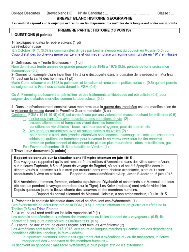 Correction Brevet Histoire Géo 2015 Les Corrigés Des