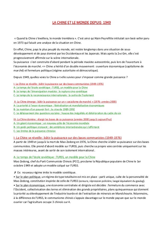 La Chine Et Le Monde Depuis 1949 Cbcours