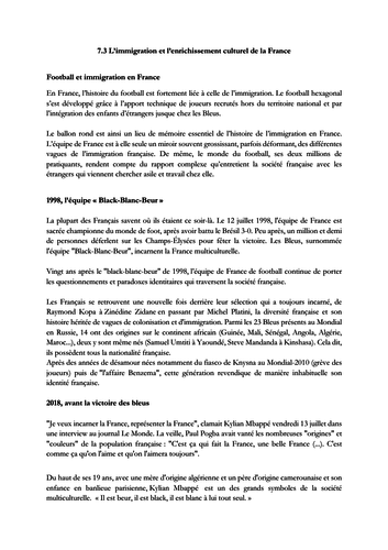 French New A Level Immigration Football France Reading Exam Style Style Question Etc