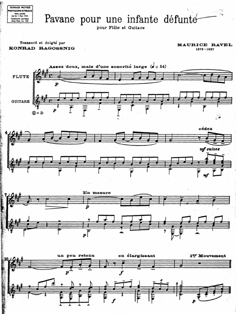 Partition Pavane Pour Une Infante Défunte Flûte Guitare De Maurice Ravel Pour Flûte Guitare Chez Eschig