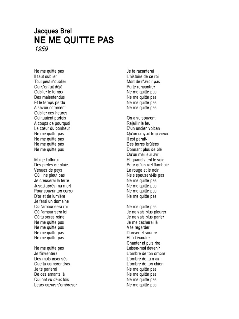 Jacques Brel Ne Me Quitte Pas Rocktraductionsover Blogcom
