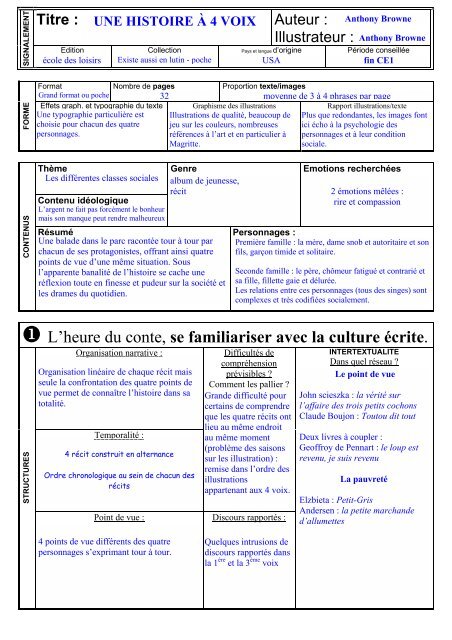 Une Histoire A Quatre Voix Anthony Browne Les Lectures